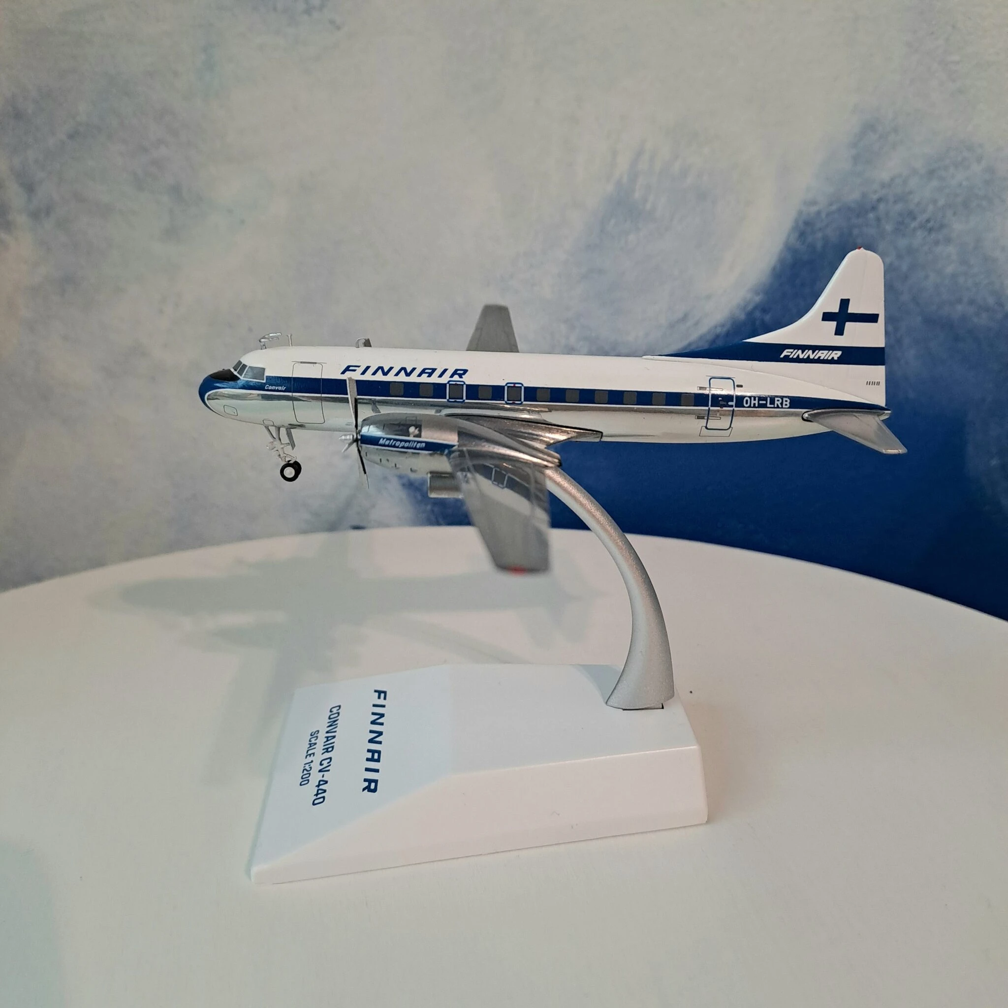 Tyylikkään metallisen pienoismallin mittakaava on 1:200. Convair Metropolitan -pienoismalli on loistava lahjaidea pienoismallikeräilijälle tai nostalginen muistoesine vuosikymmenten takaisista matkoista.
