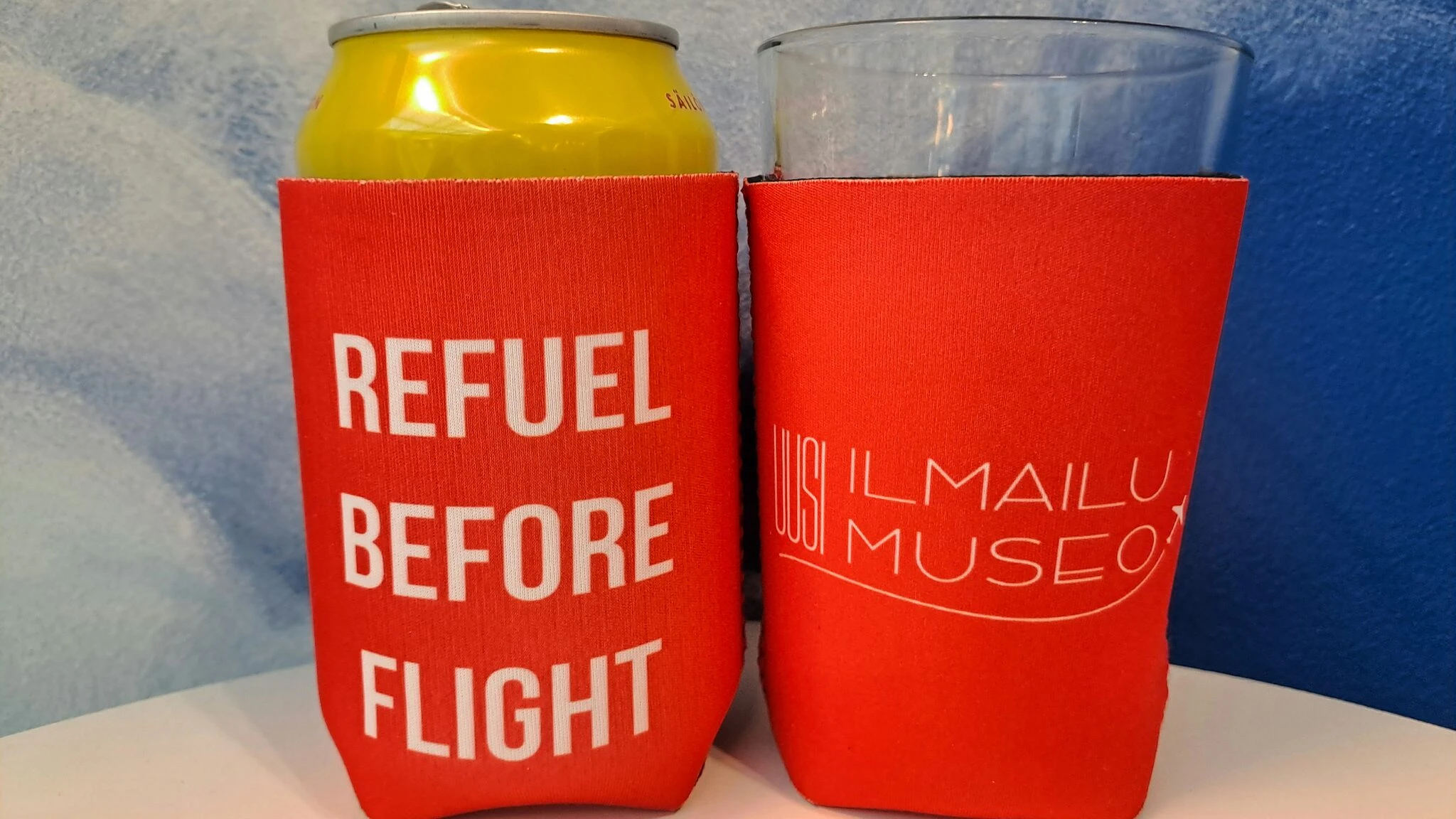 Juomacoolerin teksti "Refuel Before Flight" on saanut inspiraationsa ilmailussa käytetyistä "Remove Before Flight" -merkeistä. Tölkkicoolerin toiselta puolelta löytyy Uusi Ilmailumuseo -logo.