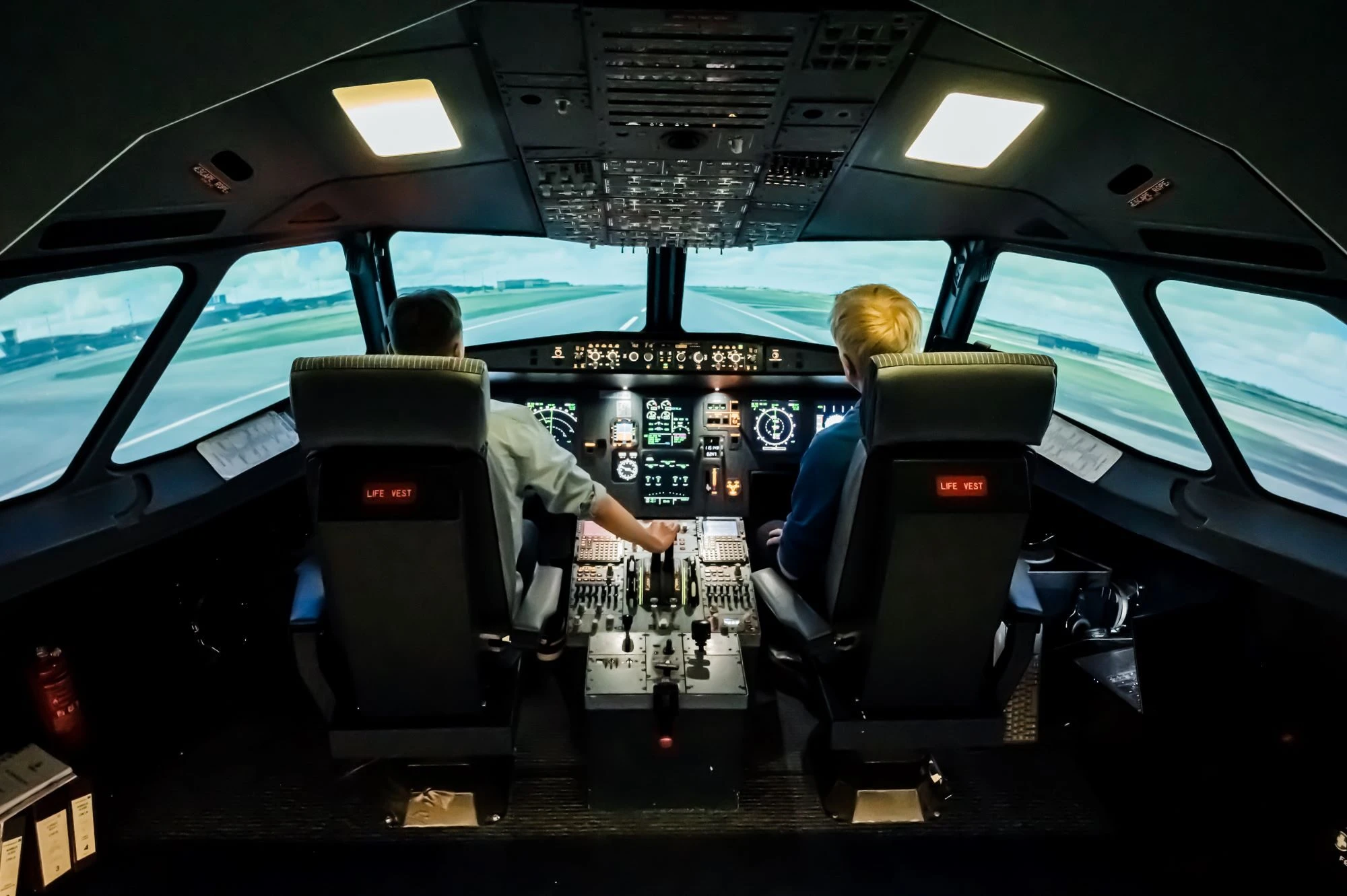 Simulaattorissa on kouluttajan ja lentäjän tuolien lisäksi neljä istuinta, joten mukaan mahtuu enemmänkin osallistujia hinnan pysyessä samana.