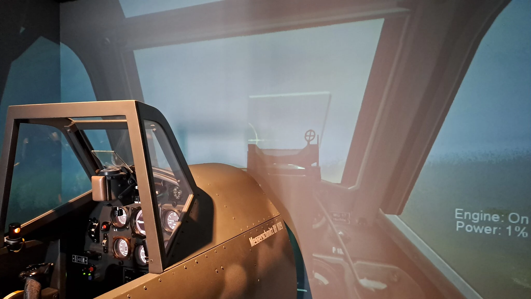 Simulaattorin runko on replika saksalaisvalmisteisen hävittäjän rungosta kaikkine hallintalaitteineen. Laadukas kolmen videotykin visuaali projisoi hävittäjän etu- ja sivunäkymät lentäjän ympärille.