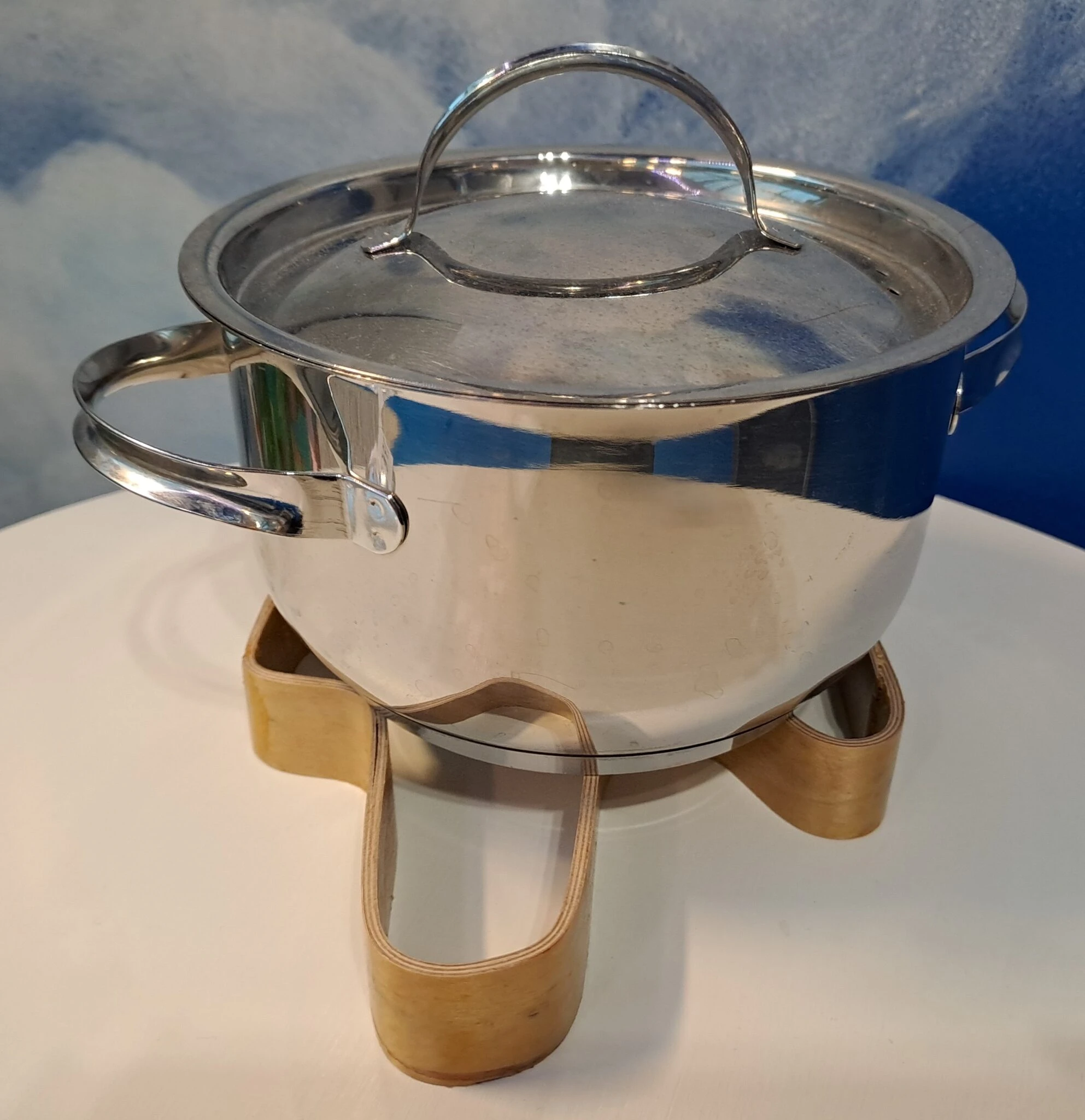 Lentokoneen muotoinen pannunalusta on leikattu, liimattu ja ja muotoon puristettu vanhasta lentokonevanerista. Pannunalusen esikuvana on Ilmailumuseon kokoelmien I-16 "Rata"-lentokone. Kone saatiin sotasaaliiksi kesällä 1941 venäläisen luutnantin laskettua sen nokilleen suomalaisten valtaamalla Troisan Konnun lentokentällä.