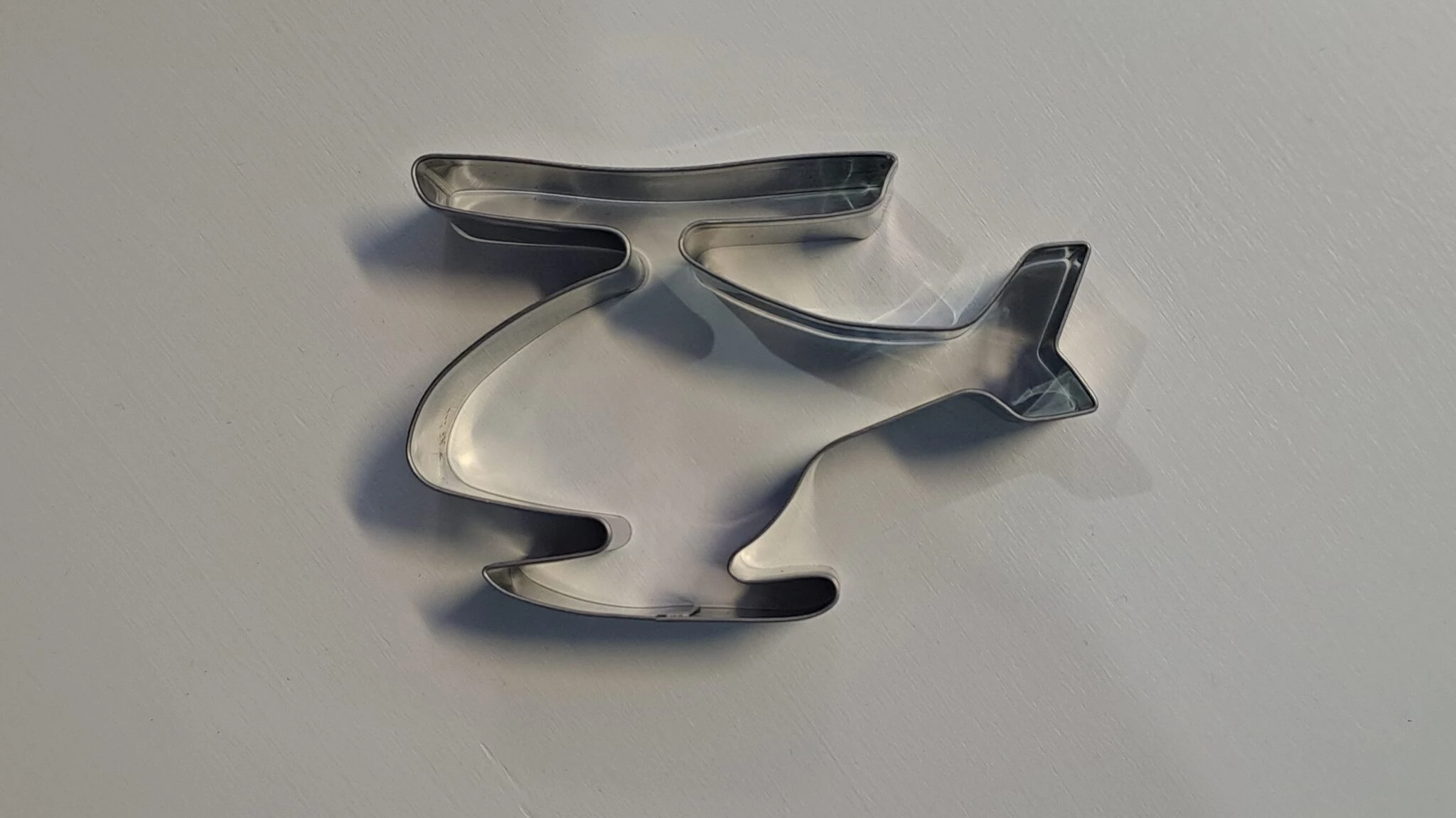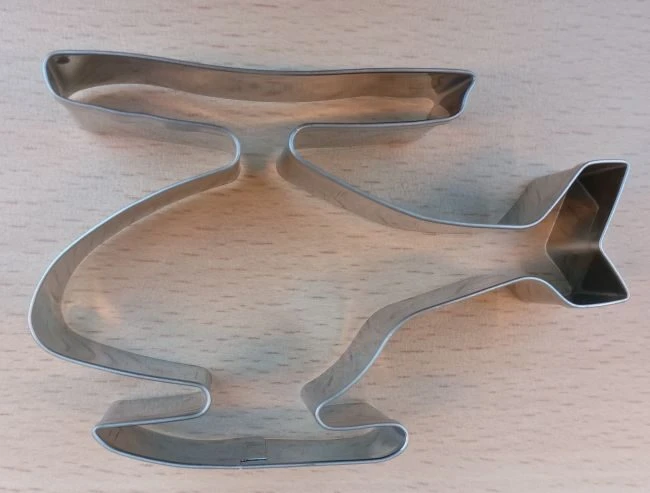 Helikopterin muotoinen piparkakkumuotti.Mitat: 5,9 cm x 9 cm.