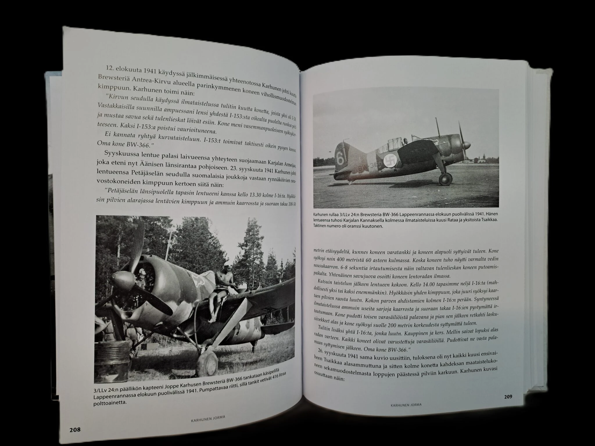 Kunkin ässän sotilasura käsitellään perusteellisesti sisältäen palveluksen eri yksiköissä, ylennykset ja palkitsemiset sekä useita ilmataistelukertomuksia päättyen ilmavoittoluetteloon. Esitystä täydentää laaja kuvavalikoima niin henkilöistä, tilanteista kuin hävittäjistä.